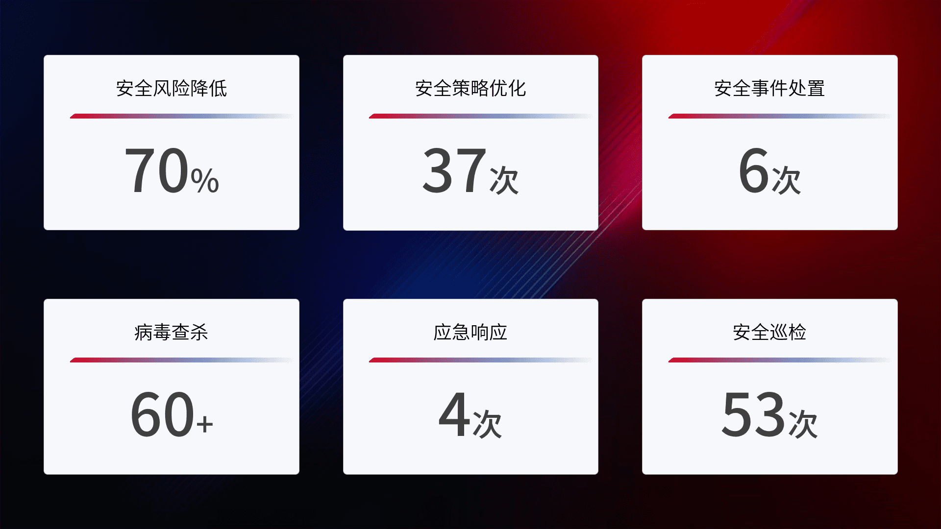 综合报告与文档服务: 定期提供安全事件处置报告、、、周/季度总结报告和年度总结报告;详尽的文档服务可帮助客户了解网络安全状况,,,,支持决策制定和流程优化。。。。